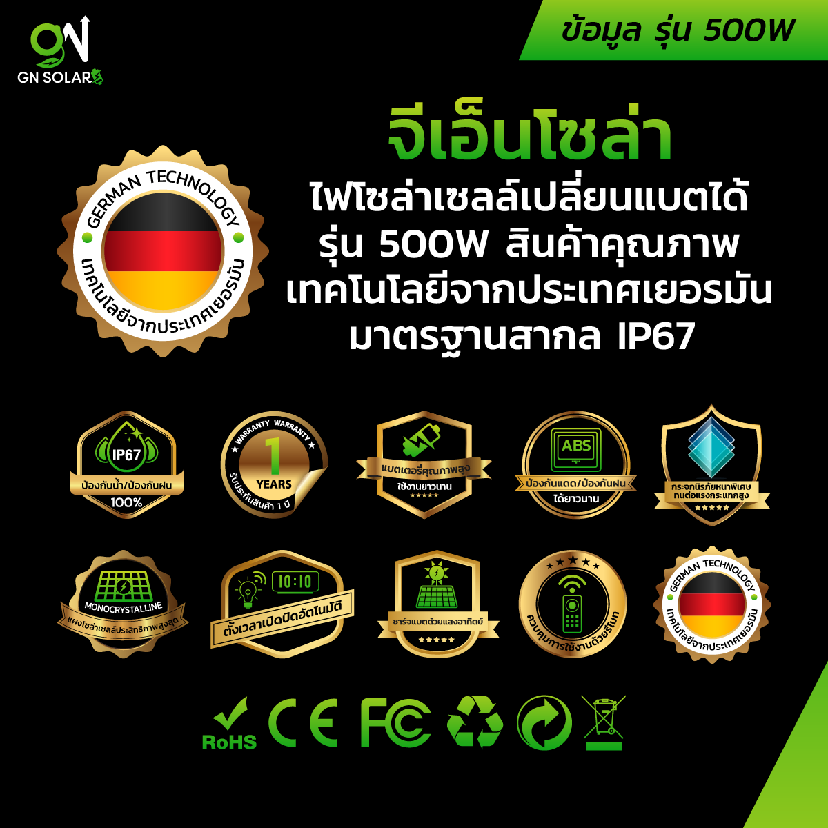 ไฟโซล่าเซลล์ เปลี่ยนแบตเตอรี่ได้ (เทคโนโลยีจากประเทศเยอรมัน)